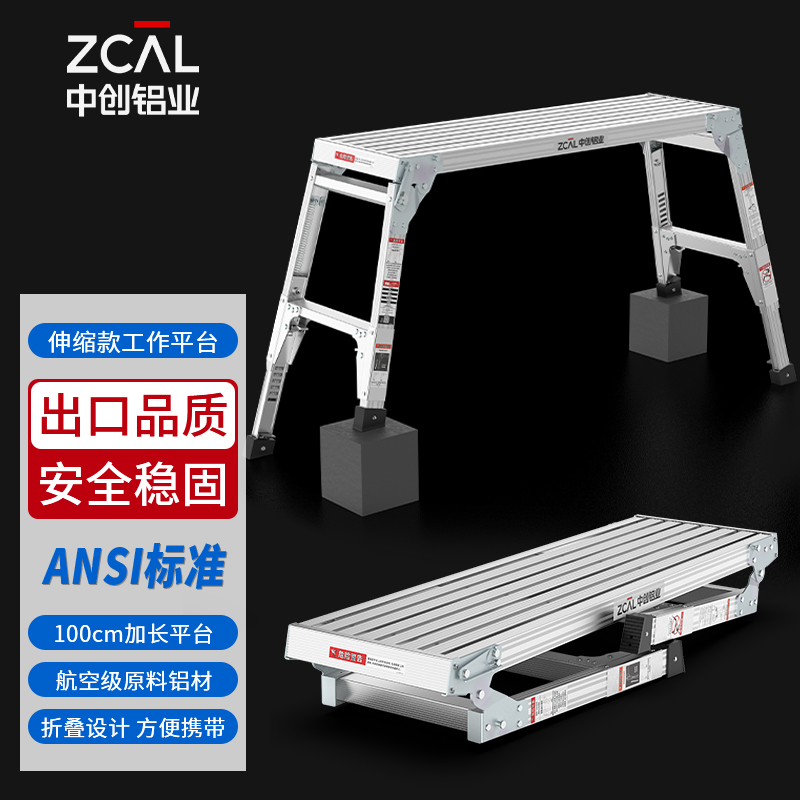中创伸缩平台梯加厚铝合金多功能..